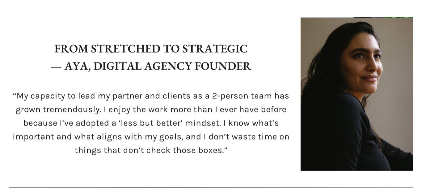 This isn’t about doing more. It’s about doing the right things — the actions that lead to real progress and create a business that supports your life, not the other way around.